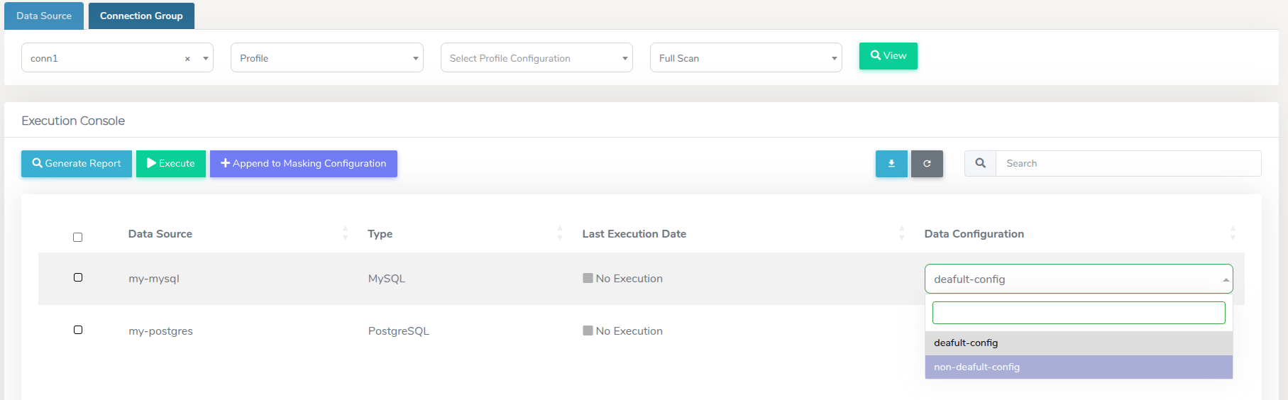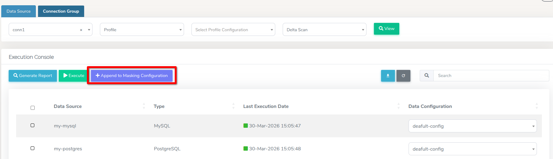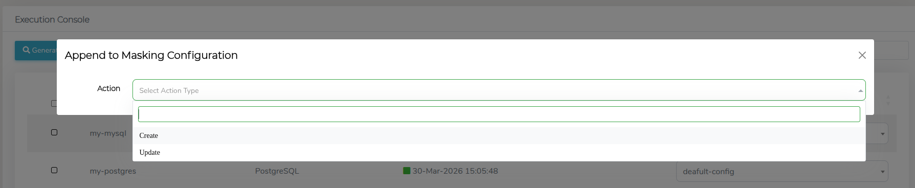 From the Execution Console section, click the + Append to Masking Configuration button.