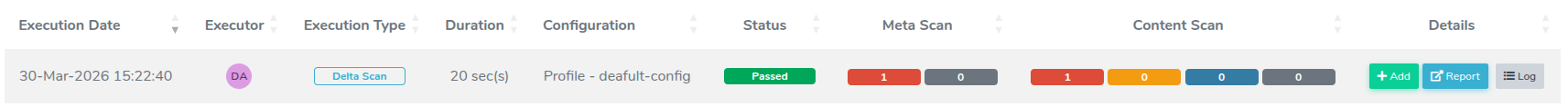 In the Execution Details section, locate the execution with Execution Type set to Delta Scan. In the Details column, click + Add.