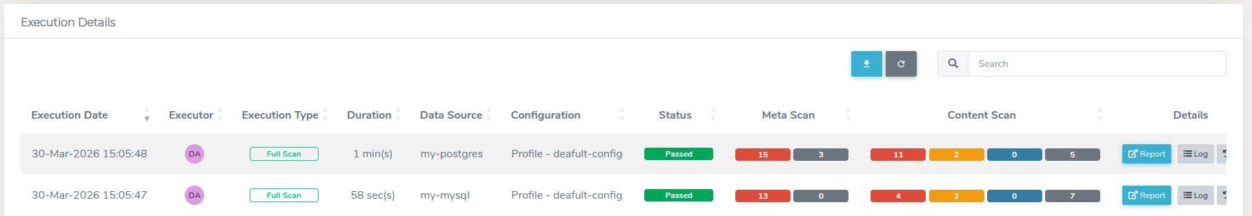 In order to run a bulk profile scan, select all the data sources that you want to execute the scan on and click on Execute.