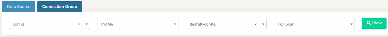 Here, select your Connection Group from the first dropdown menu, then select Profile for your scan type, and then the default profile configuration to be used for all or most data sources in the connection group. Ensure Full Scan is selected in the right-most dropdown list, then click View after selecting all fields.
