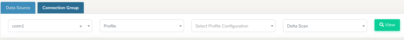 Similar to Full Scan, select your Connection Group from the first dropdown menu, then select Profile for your scan type, and then the default profile configuration to be used for all or most data sources in the connection group. Ensure Delta Scan is selected in the right-most dropdown list, then click View after selecting all fields.